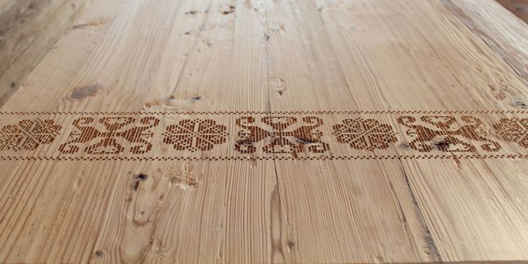 Wir interpretieren den Bündner Kreuzstich neu und bringen ihn aufs Holz. Muster und Anwendungsmöglichkeiten sind sehr vielfältig - Fragen Sie uns an.