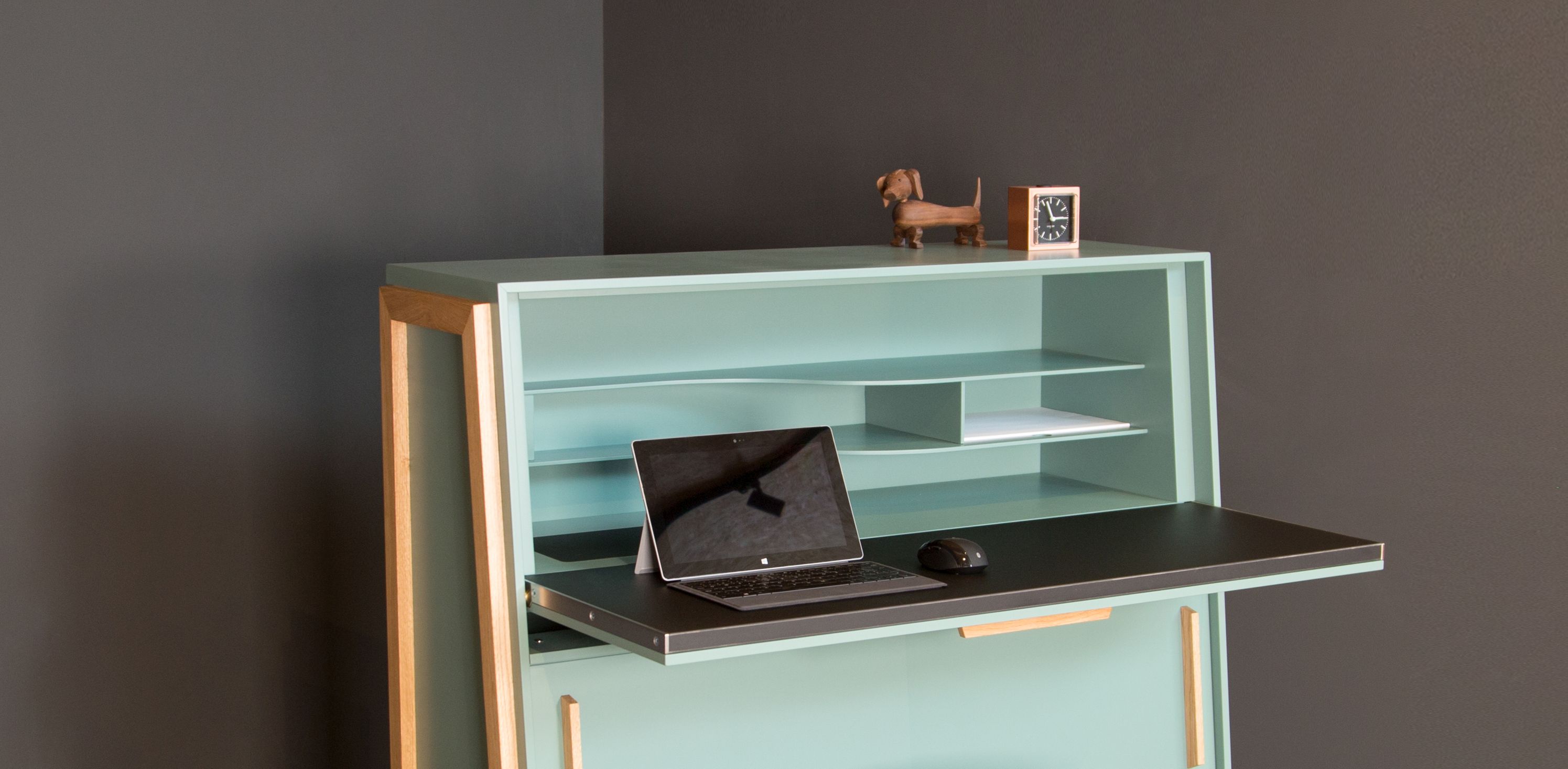 Sie haben in ihrer Wohnung kein separates Zimmer für ihr Büro? Unser WATSON nimmt das Büro diskret in ihr Wohn- oder Gästezimmer. Zum Beitrag: Sekretär Watson